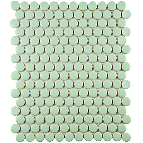 SomerTile FXLMPMG Retro Penni Porcelain Floor and Wall Tile, 9.875" x 11.5", Matte Light Green