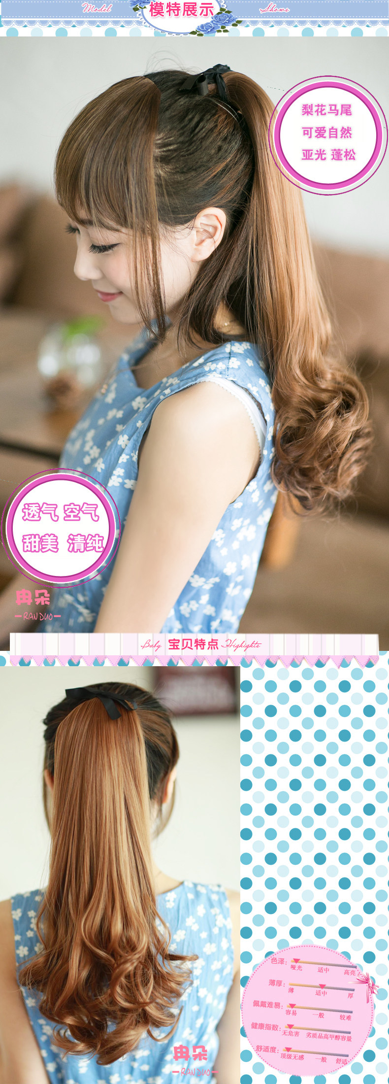 Wigs after a long time such as impulsive phenomenon, as long as the spray a little care solution, will soon restore supple Oh!! very effective help us to extend the service life of the wig oh! This paragraph horsetail with new fluffy hair, the hair is good weight is not heavy, wearing not uncomfortable, hair looks more plump! Kiss it, as long as gently roll grab open can show the effect of the model in the graph to wear Oh ~ is not very realistic and natural it!