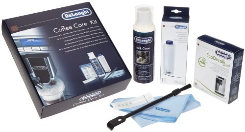 -. Feature : Inhalt:Wartungsanleitung, EcoDecalk Mini (2x100ml), Wasserfilter, Milk Clean(250 ml), Mikrofasertuch, Pinsel/Spatel, Teststreifen / Das Coffee Care Kit ist das neue De'Longhi-Set für die Reinigung und Wartung Ihrer Kaffeemaschine. / Die regelmäßige Pflege der Maschine verhindert den Verschleiß, verringert die Bildung von Kalkablagerungen, erhält die Leistungsfähigkeit des Geräts und verstärkt den natürlichen Geschmack des Kaffees. / Für alle De'Longhi Kaffeemaschinen mit und ohne Wasserfilter