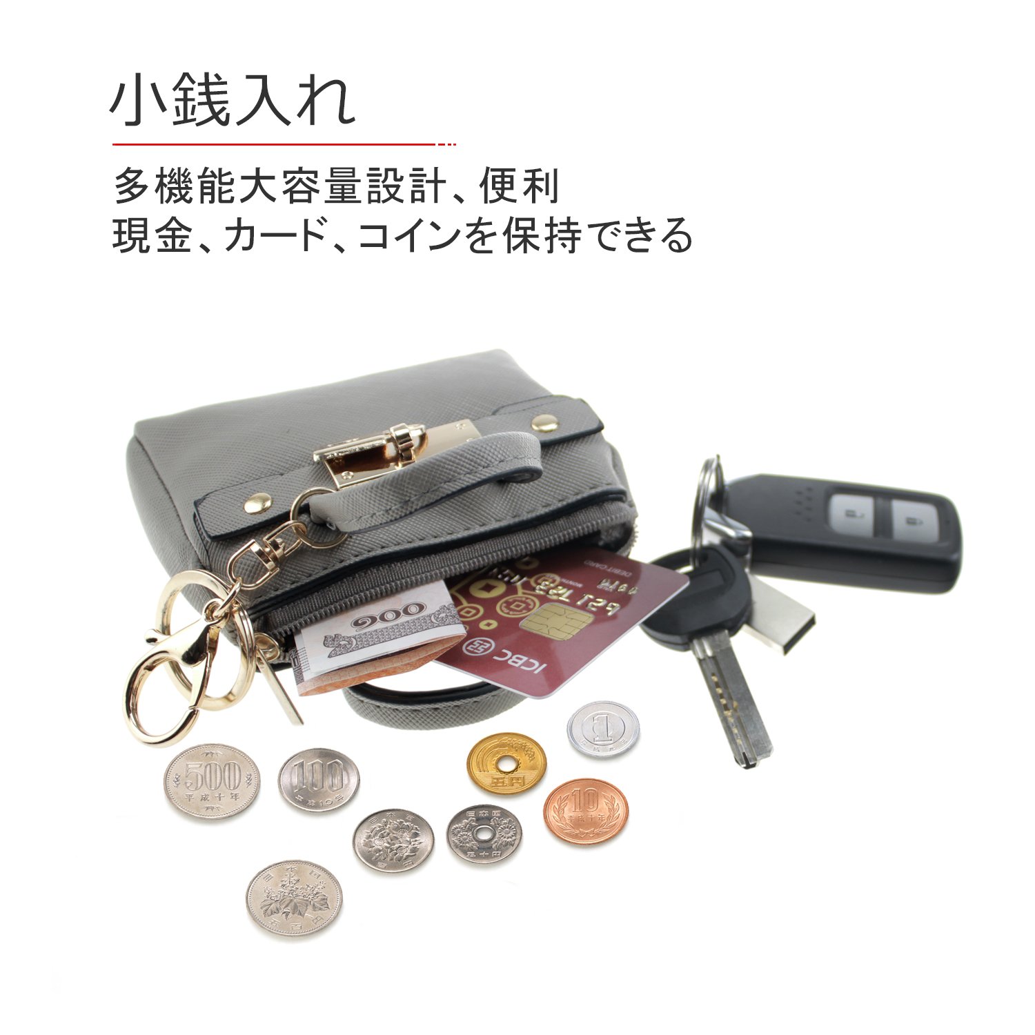 Not only as a coin case with a key ring but also as a key case.