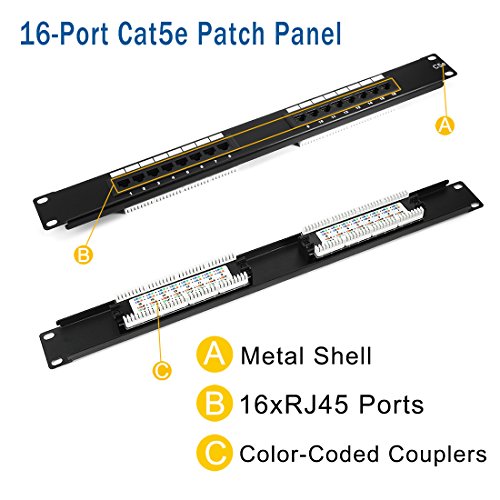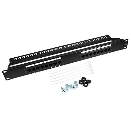 Studio : uxcell Publisher : uxcell Binding : Misc. Product Description Features ? ?1U 19inch UnShield, 180 degree cable entry;????? ? ?EN 50173 and ISO/IEC 11801;? ? ?EIA/TIA 568-C Cat.5E;? ? ?RJ45 Contacts durability:750 cycles min; ? ?IDC Contacts durability:200 cycles min; ? ?Color coded T568A and T568B wiring diagrams; ? ?Backward compatible with older networks (eg. Cat. 3, 4, 5, 5e?horizontal cabling); ? ?Suitable for 22, 24 and 26 AWG (0.64, 0.5 and 0.4 mm) cables horizontal cabling; ? ?Cat5e?compliant, perfect for Gigabit Ethernet; ? ?110 Type 16-Port Cat5e?Patch Panel (568A/B Compatible); ? ?Use with the card module on Power Connection; ? ?For use with unshielded twisted pair (UTP) Cat5e?network cable; ? ?The surface of the label window with a replaceable label bar, to facilitate customer management; ? ?CE and Reach Compliant. ? Specifications Port: 16?ports Standard: Cat.5e? Color: Black Material: Cold rolled steel,plastic spraying Weight: 605g Height: 1U=44.5mm Length: 19inch=480mm Size:?480*90*44.5mm Apply to: any standard 19inch rack and?cabinet? ? Package Contents - 1 x 16?Ports Cat?5e?RJ-45 UTP?Ethernet?Patch Panel - 1 x Cable Ties Kit - 1 x Screws Kit ? Warranty 1 year free replacement for defective units and 30 days unconditional return and refund; friendly customer support within 24 hours. 0