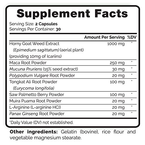- Title : Natural Horny Goat Weed Extract Complex w/ Maca Root, Tongkat Ali, Saw Palmetto | Best Herbal Libido Booster Supplement For Men & Women | 1000mg Epimedium & 10mg Icariins per Serving | 60 Capsules