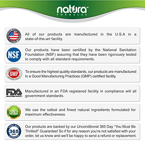 - LegalDisclaimer : * The product statements on this page have not been evaluated by the FDA. This product is not intended to diagnose, treat, cure, or prevent any disease. While we guarantee that the product we are advertising here is the same as what you will receive, the actual product packaging and/or materials may look slightly different or contain additional information. We recommend that you do not rely solely on the information presented and that you always read labels, warnings, and directions before using or consuming a product. ** Natura Formulas is a registered brand on Amazon and is the sole manufacturer of this product. The manufacturer's warranty and any applicable guarantees only apply to purchases made directly from Natura Formulas. The manufacturer's warranty does not apply if purchased from anyone other than Natura Formulas.