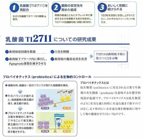 Studio : Lion Publisher : Lion Binding : Misc. Product Description Unlike antibiotics which kill both good and bad bacteria at the same time, probiotics help increase the number of good bacteria in the body and protect our health. Lactic acid bacteria ls1 originally lives in the mouth. By adjusting the balance between good and bad bacteria, ls1 helps restrict the work of bad bacteria and prevent these bad bacteria from generating harmful substances. Living lactic acid bacteria ls1 can be absorbed by eating ls1-containing food. Tablet-typed ls1 is good since ls1 can remain in the mouth for a long time. 【product name】 lion lactic acid bacteria ls1 dental oral health tablet 90 tablets x 2 boxes 【ingredients】 dextrin, maltitol, erythritol, lactic acid bacteria powder, sorbitol, fragrance, sucrose ester, fine silicon dioxide 【nutritional facts】 energy 198 kcal, protein 0 g, lipid 0 g, carbohydrate 59 g, sodium 5 mg 【classification】 food containing lactic acid bacteria 【content】 90 tablets x 2 boxes 【country of origin】 japan 0