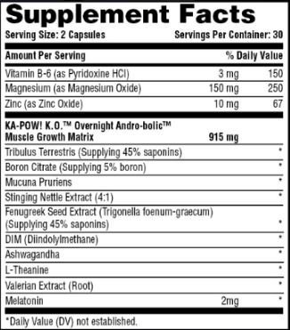 3 PRODUCT STACK BUNDLE! Kapow!TM Pre-workout is the fastest hitting combinational Anabolic Pre-workout on the market-- designed to achieve heroic levels of sustained athletic performance in just minutes--while promoting and further amplifying the already heightened androgenic output naturally occurring during peak muscle building exercise. By compounding inter-workout surges of androgenic production and cumulative increases in testosterone with successive and explosive high impact workouts, Kapow!TM is the ULTIMATE pre-workout for achieving MASSIVE muscle growth. • Quick Release Technology works in minutes • Androgenic triggers for maximum hormonal release mid-workout • Clinically trialed Bulbine Natalensis boosts Test levels up to 346% • Dual-wave energy release for instant and sustained performance • Promotes Nitric Oxide Release KA-POW! K.O.TM is the ultimate overnight muscle building stack, designed to promote deeper more productive sleep while optimizing Androgenic release, allowing for MASSIVE, SHIRT-RIPPING, 'HERO-LIKE' gains. Combining an entire night's worth of pro-anabolic support-- including limited estrogenic effects, elevated anabolic efficiency, and increased levels of both FREE and TOTAL testosterone-with accelerated muscle repair and recovery, KA-POW! K.O.TM propels you towards your MAXIMUM potential all night long. Stack with KA-POW! Anabolic Pre-workout for the ultimate 24/7 muscle support. Train like a hero! Kapow Drawstring logo bag with sturdy cord, reinforced corners, size W 14" x H 20"Feature