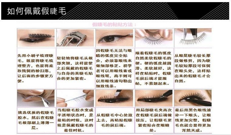 3、整个粘,把尖的部位稍微修正一下就可以了,适合晚间,还有舞台和演出(可同时粘2--3副),显的眼睛大而浓密!