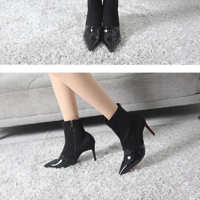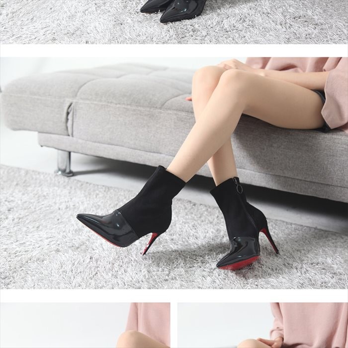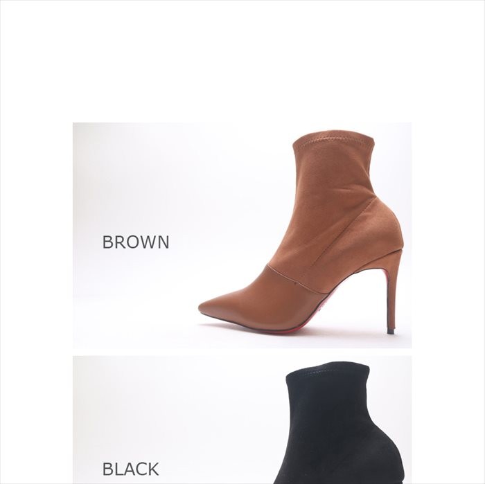 商品名:ブーティ レディース ブーティー ピンヒール レッドソール 切り替え スエード調 2017 秋冬 ファッション 靴 婦人靴