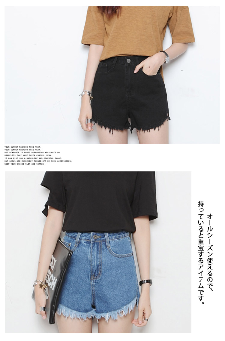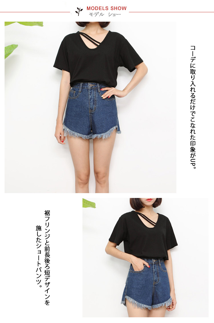 | コーデに取り入れるだけでこなれた印象がUP。裾フリンジと前長後ろ短デザインを施したショートパンツ。ハイウエストデザインでトップスインになって美脚効果も絶大◎デイリーにはもちろん、バカンスシーズンにビキニとの相性も抜群!オールシーズン使えるので、持っていると重宝するアイテムです。 | |