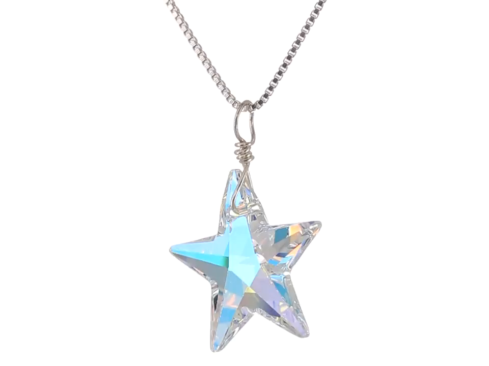 Sterling Silver Swarovski Elements Crystal Aurora Borealis Star Pendant Necklace