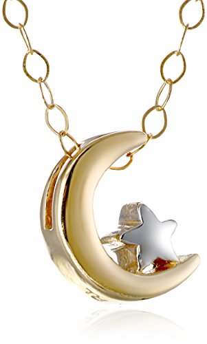 14k Gold Two-Tone Moon and Star Tiny Pendant Necklace