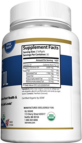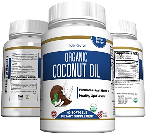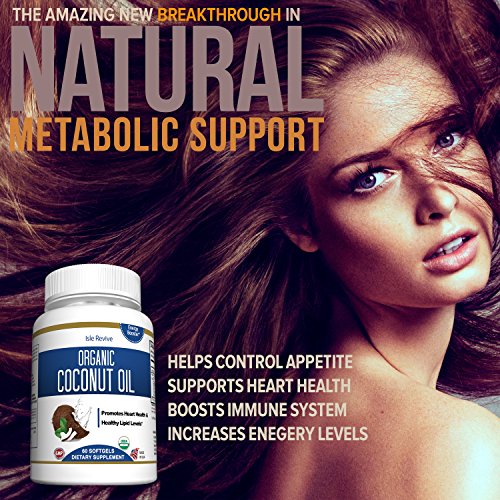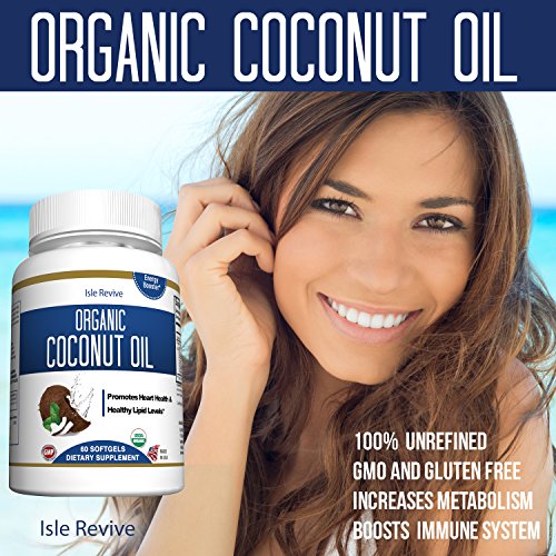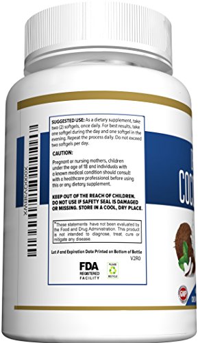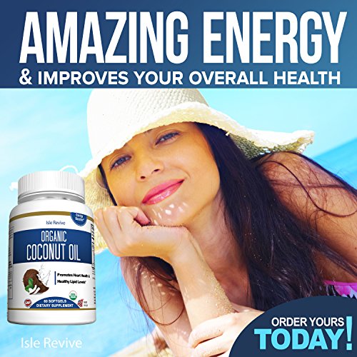 Organic Coconut Oil Capsules - 1000mg Extra Virgin Softgels - Hair Growth and Moisturizes Skin - Metabolic Energy and Weight Loss - Premium Grade...