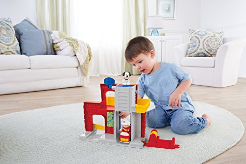 -. Binding : Toy -. Brand : Fisher-Price -. EAN : 0746775319854 -. Feature : Turn handle to drop Eddie down the "fire pole" and into the fire truck! / Fire Station doors open and close / Gate lifts and lowers to let vehicles through / Includes Fire Station, Eddie and dog figures, fire truck and connectable fence piece with spinning hose / Look for other Little People figures and vehicles to fire up more adventures! -. IsAdultProduct : 0 -. ItemPartNumber : FS-1997 -. Label : Fisher Price - Import -. Manufacturer : Fisher Price - Import -. Model : BGC67 -. MPN : FS-1997 -. NumberOfDiscs : 1 -. PackageQuantity : 1 -. PartNumber : FS-1997 -. ProductGroup : Toy -. ProductTypeName : TOYS_AND_GAMES -. Publisher : Fisher Price - Import -. Studio : Fisher Price - Import -. Title : Fisher-Price Little People Wheelies Fire Station -. UPC : 658108634261 -. Warranty : No Warranty