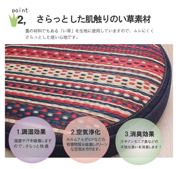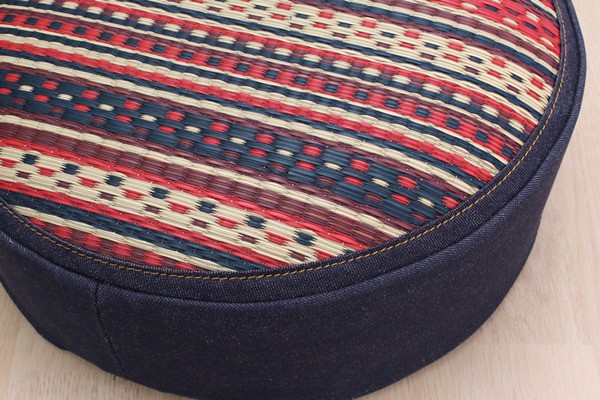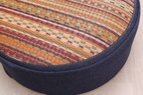 【素材】表地=い草※紋織 裏地・ヘリ・マチ部=綿100%【国産デニム生地】 中材=ウレタンフォーム15mm