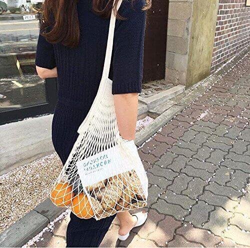 Reusable Shopping String Bag, Eco Friendly, 100% Cotton, Foldable Grocery Mesh Beach Bags for Market, Beach, Supermarket with Long Handle