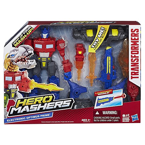 Mix and match robot parts with Transformers Hero Mashers Electronic Action Figures Wave 1! Each figure has electronic parts plus fun features like launching missiles and cool swords. Swap heads, arms, legs, and weapons between these figures and make your own freakish Cybertronian creation that would make Transmutate blush!