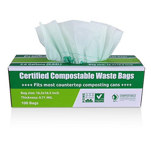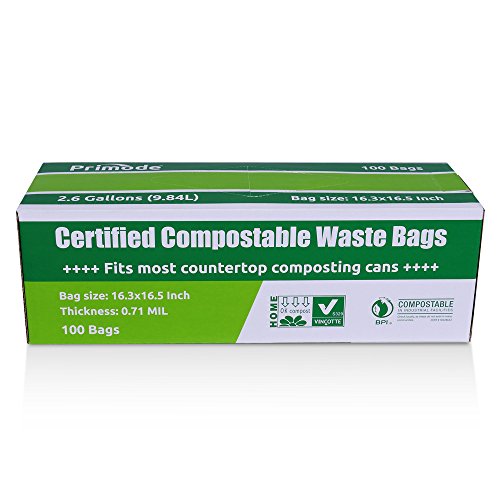 Primode 100% Compostable Bags 2.6 Gallon Food Scraps Yard Waste Bags, Extra Thick 0.71 Mil. ASTMD6400 Biodegradable Compost Bags Small Kitchen Trash Bags, Certified By BPI And VINCETTE, (100)