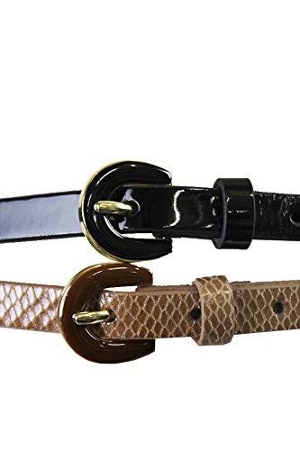 Product DescriptionGet paired up with this set of Style co. slim faux leather belts fronted by a gilded enamel buckle.Choose from sleek snake-print or chic solid for a decidedly sophisticated finish to any outfit.0