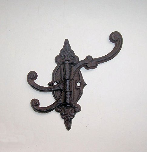 -. Feature : 3 moveable hanger hooks - Swivels 90 degrees - With an antique look - Individually hand casted - A tradition handed down over the centuries - Wall hung indoor or outdoor use / Made of heavy cast iron - Rustic dark bronze finished - Colonial Style - Each hook swing Individually / Swivel hanger measures approximately: 5-1/2 in wide x 5-1/2 in high - Extends 3-3/4 in from the wall - Hangs by two screws - Not included / Use for hanging coat and hat, keys, jewelry, candles, wall decoration and more - New, ever been used / Note: To see cast iron discounted products +++ Search on Amazon: ABC Products Cast Iron