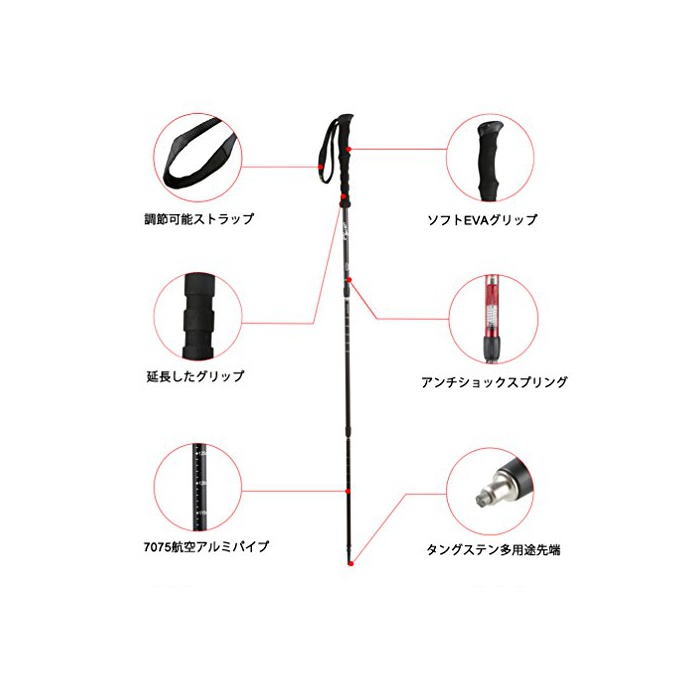 【anti쇼크 기능】anti쇼크 시스템이란 폴 중에(속에) 스프링이 내장 되고 있고, 손목이나 팔에의 부담을 경감 시키는 역할을 맡는 것입니다.스프링이 쇼크를 흡수해 줍니다.장시간 보행 부담을 경감하거나 쾌적함을 플러스 할 수 있는 아이템에,등산에 빠뜨리지 않습니다.