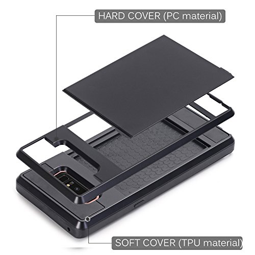 Galaxy Note 8케이스, ASSTAR [스탠드 기능] [카드 포켓 지갑형 케이스] [하드 쉘]2 층내충격[소프트 러버 범퍼]하이브리드 보호 커버Samsung Galaxy