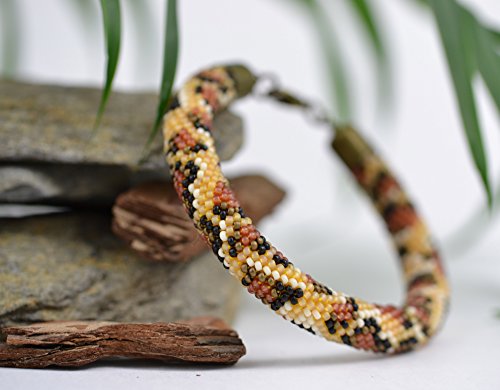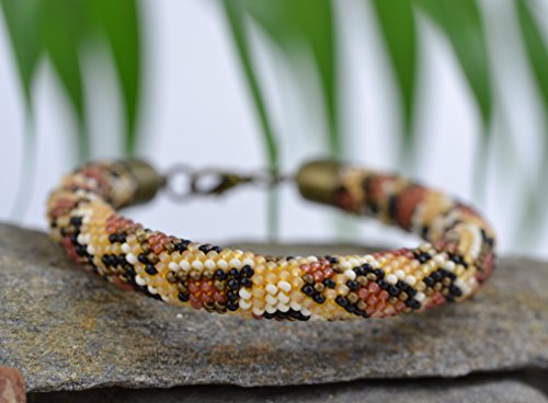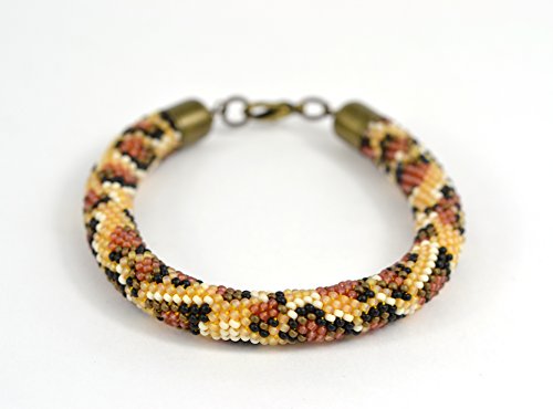 -. Title : Leopard Beaded Bracelet - Bead Crochet Bracelet - Bangle Bracelet - African Safari White Yellow Bronze Black Beadwork Jewelry Animal skin