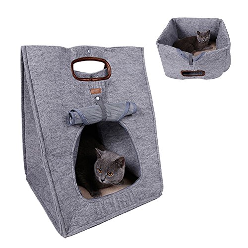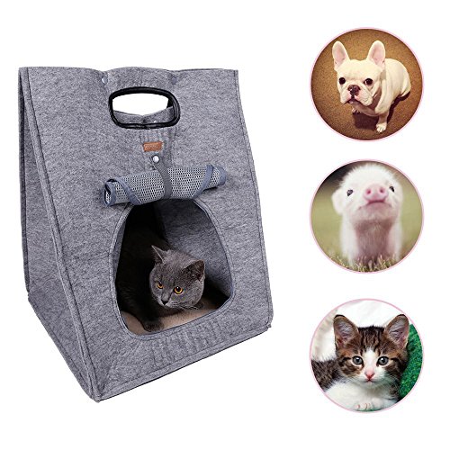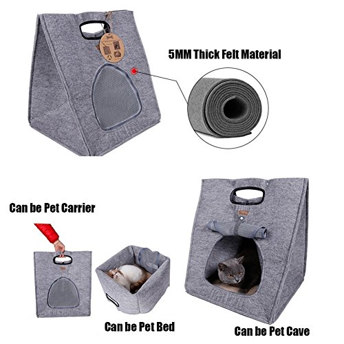 Smart Size: The kitten cave is sized at 19 x 16 x 1 inches. It is made of PU leather pipping for decorate . It has a heavy duty carrying handle. This can be snapped closed. So there are no worries about your little pet getting out.