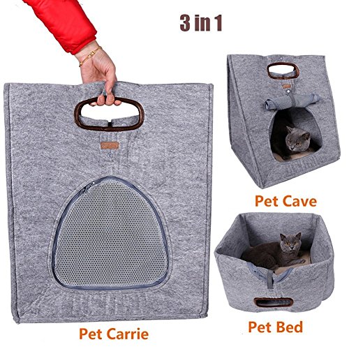 3 In 1 Multifunctional: The felt pet cat travle bag can be used as pet carrier and pet beds, pet nest. With air mesh window,the pets feel breathable comfortable. The sheepskin is removable and washable