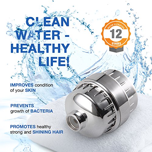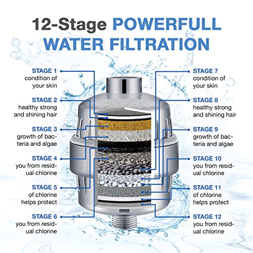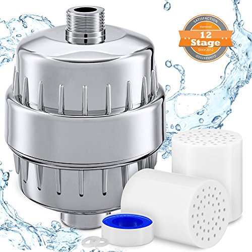 Shower Filter High Output Premium Hard Water Softener With 2 Replacement 12-stage Cartridge Improves Skin And Hair Health Best Water Filter For Any Faucet Shower Head And Handheld Shower or RV Chrome