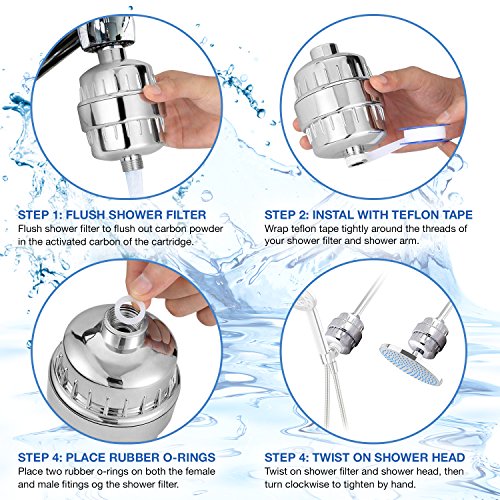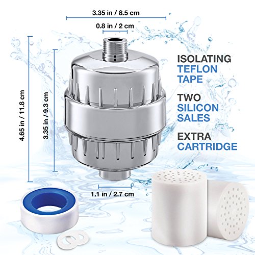 - ★ EASY TO INSTAL - Shower water filter small in size, and fits for any bath, bathroom, tub faucet, shower head and handheld shower. Universal connections work with all shower types, including fixed, rain and handheld showers. All tools included (2x 12-stage cartridges, 1x Teflon tape, 2x silicone seal, 1x housing).