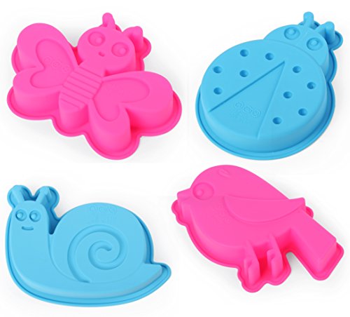 Home Value 4-Piece DIY Insect Silicone Cake Mold /Jelly Mold /Pudding Mold /Ice cream Mold, SNAIL, LADY BUG, BIRD, BUTTERFLY (Assorted Colors)