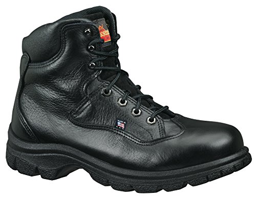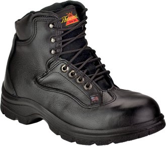 Studio : THOROGOOD Publisher : THOROGOOD Binding : Apparel Product Description Thorogood 6" Steel Toe Sport Hikers with comfort weave lining and SHOCK ZONE insole for superior comfort! SAVE BIG! Serious American-made comfort for work or woods. All-day comfort is the name of the game... and Thorogood delivers big-time. It starts from the ground up: the Soft Streets polyurethane outsole nullifies the impact of your foot repeatedly hitting hard ground. It doesn't stop there, though. These Hikers feature removable polyurethane SHOCK ZONE inserts to cushion and ventilate your foot where it rests in the Hiker, offering all-day comfort. Top it off with comfortable, breathable comfort weave lining, and you've got a Hiker you'll want to wear all day. Throw in nice safety features like a safety toe and electrical protection, and this Hiker's ready to go for work or woods. See for yourself: Rugged full-grain black leather uppers; ASTM-certified steel toe; ASTM-certified electrical hazard protection and shock resistance... keeping you safe and shock-free; Sturdy outsoles are non-marking and slip-resistant; Fiberglass shank adds stability; 6" h. Each weighs approx. 35 ozs. State Size. Order yours today! Thorogood 6" Steel Toe Sport Hikers, Black