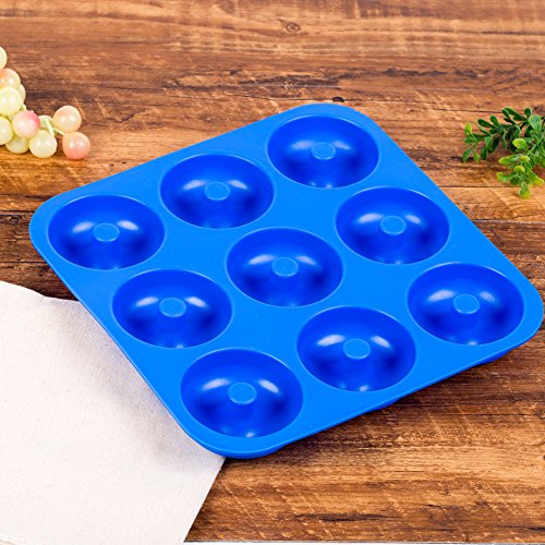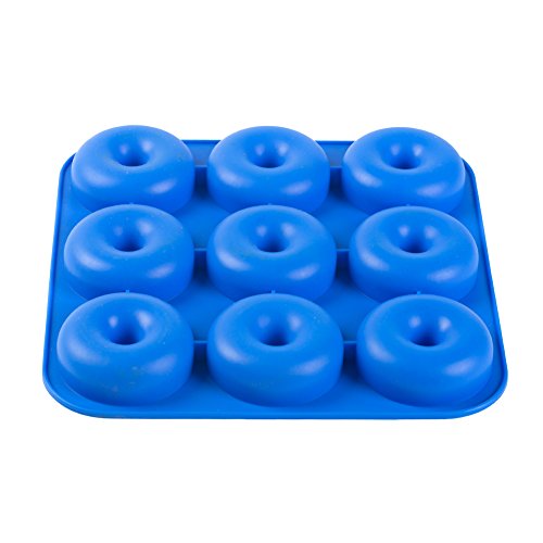 Large Donut Pan Professional Grade Non-Stick Silicone Donut Pan, Makes 9 Full Size Donuts,Made Of Heavy Duty, Heat Resistant Material, Dishwasher and Freezer Safe Donut Mold