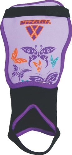 Studio : Vizari Publisher : Vizari Product Description Unique graphic on a synthetic shell that is grooved so that it can flex and is adjustable to suit the shape of the leg. Front closing strapping system. Padded ankle protection. ---Size guidance--- * Size Pee Wee - for child up to 3'3" * Size XXS - for child up to 3'7" * Size XS - for child up to 3'11" * Size S - for child up to 4'7" * Size Medium - for adult up to 5'3" * Size L - for adult up to 5'11" 0