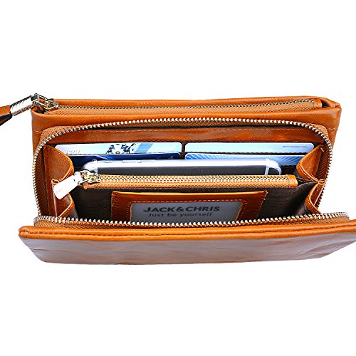 NICE DESIGNED CLUTH WALLET: You could hold this wallet by stretched hand grip, 1 main zipper pocket includes 12 card slots, 2 compartment, 1 zipper pocket; Side zipper pocket is padded for Cell Phon. Zipper opening/closing makes access to your phone and cards convenient while keeping everything safely inside.
