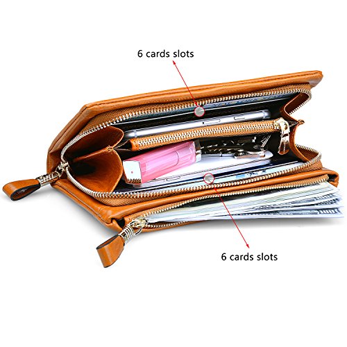 LARGE CAPACITY PURSE: Clutch wallets for women could hold 12 credit cards, smart phones and paper money, coins, keys, lipstick, checkbook in one time.