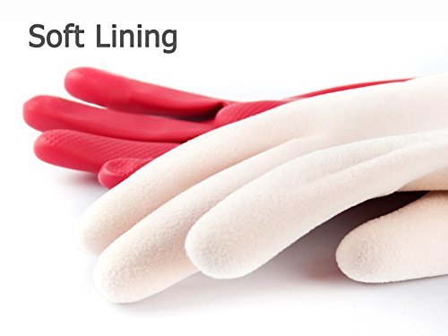 ·These Cleanbear rubber gloves latex gloves come up with two sets of gloves, one to the kitchen and the other to bathroom, clear division of labor .