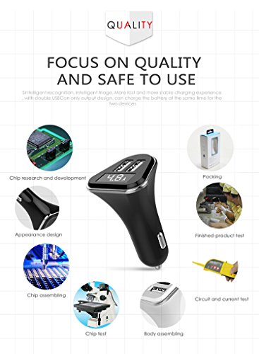- This Car Charger features LED display to show the voltage of the car battery, and the current of the device you are charging.