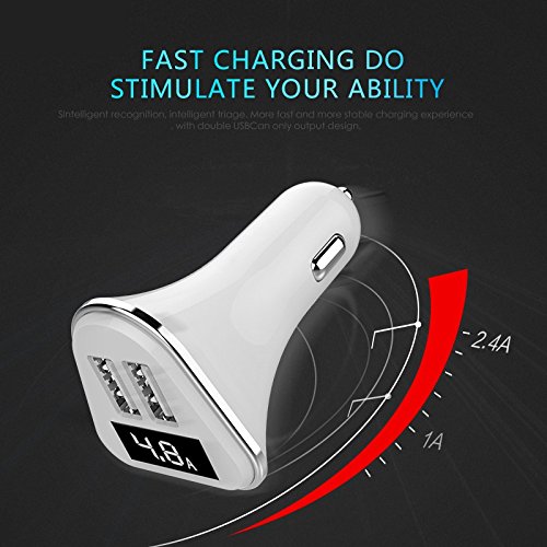 JD Car Charger with LED,Quick Charge ,Smart Dual Output USB 2.0- 5V/4.8A provide optimal charging efficiency for iPhone, Samsung ,HTC ,LG,Nexus