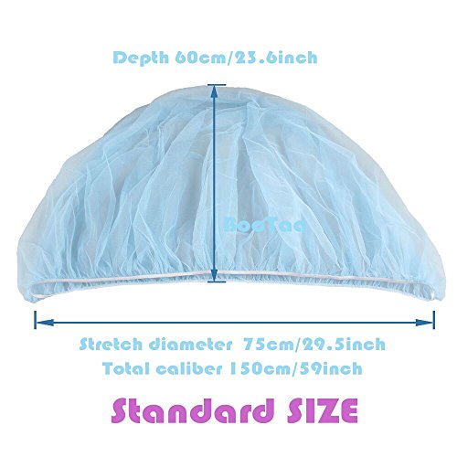 Studio : BooTaa Publisher : BooTaa Binding : Baby Product Product Description BooTaa Baby nets for most baby jogger strollers and cradles offers 100% protection against bugs, bees, mosquitos flying insects. The baby net is expandable and can be adjusted to anything you use it with and fit almost anything you plan on taking outside: fits for most strollers, a generously sized rock n play / pack n play, snap and go, cribs, beds, car seat, stairs, small tent, bed playpen, stuffed animals, bassinets and more. Features: - Size: overall width - side to side: 75cm / 29.5inch, overall height/depth - top to bottom: 60cm / 23.6inch, Total caliber: 150cm / 59inch - Material: BooTaa mosquito net is made of 100% polyester with breathable fabric, not treated or sprayed with chemicals in any way, so it's totally safe for your baby. -This universal insect netting fits standard strollers, carriers, carriages, pack and plays, bassinets and cradles. - The mosquito netting expands pretty well refer to the elastic boarder, weaves not too tight not too lose - The mesh allows for air flow and circulation to keep the baby comfortable and cool during use. Small holes that compose the weave are small enough to prevent insects to go through. - Protects baby from mosquitos and flying insects. - Keeps insects away while providing shade. - Conveniently tucks away under the seat while not in use. - Elastic band ensures optimum grip on all models of stroller. - It attaches quickly and securely to your stroller keeping your child protected from bugs. - No assembly required. Warning - This baby net does not fit double stroller (side by side type) - It can be machine washed but pls wash with low-temperature water that not exceed 30C or 65F to 85F. Guarantee 100% money back if the baby net doesn't fit or you don't like it with 1 Year warranty. Package 2x Mosquito net (35.4 x 29.5 inch) in one plastic bag 0