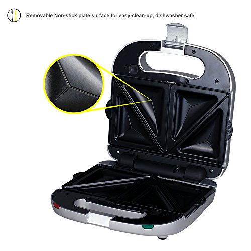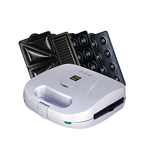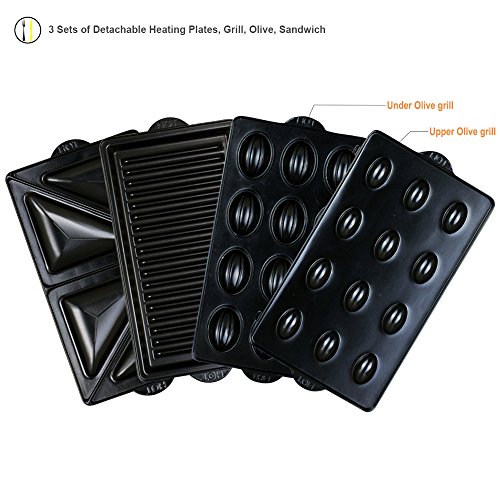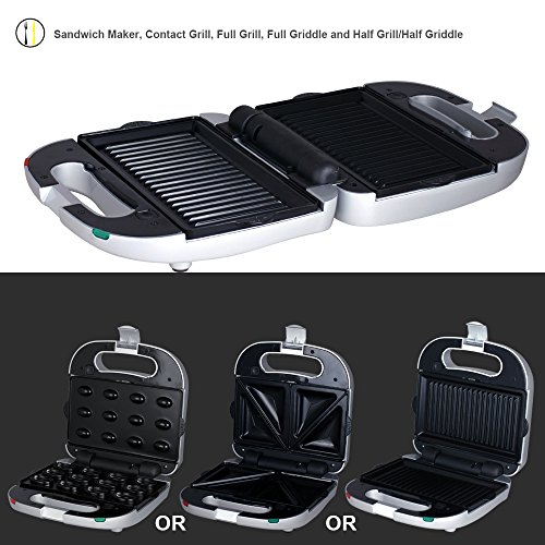 ZZ S6161-S 4 in 1 Grill Griddle Olive and Sandwich Maker with 3 Sets of Detachable Non-stick Plates,Silver
