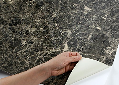 Peel & Stick Flame Retardant Backsplash Granite Marble Maron Emperado Gray Black Contact Paper Self-Adhesive Wallpaper PGF414(4710-1) : 2.00 Feet X 6.56 Feet