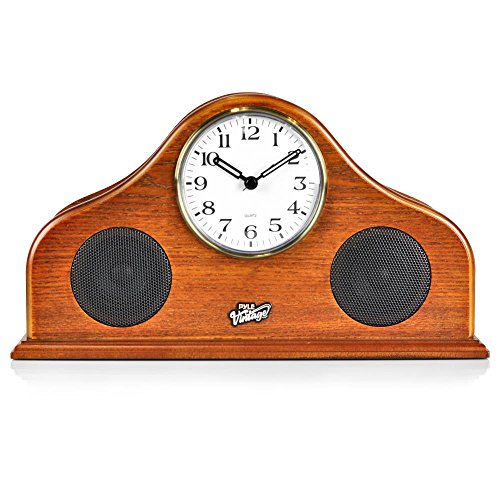 Pyle 2-in-1 Retro Vintage Style Clock & Bluetooth Stereo Speaker System, Brown (PVNTLCL41BT)