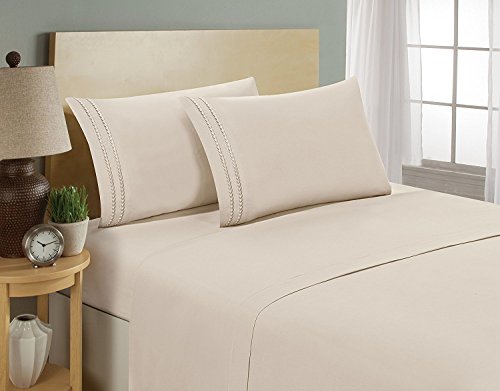 1500 Thread Count CHAIN DESIGN Egyptian Quality Luxurious Silky Soft HypoAllergenic WRINKLE & FADE RESISTANT 4 pc Sheet set, Deep Pocket Up to 16" - California King Beige