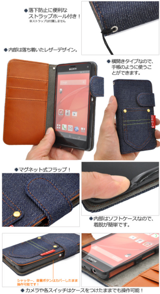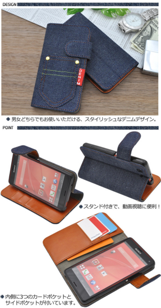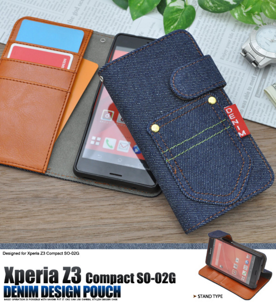 デニムデザインのXperia Z3 Compact SO-02G用スタンドケースポーチ。