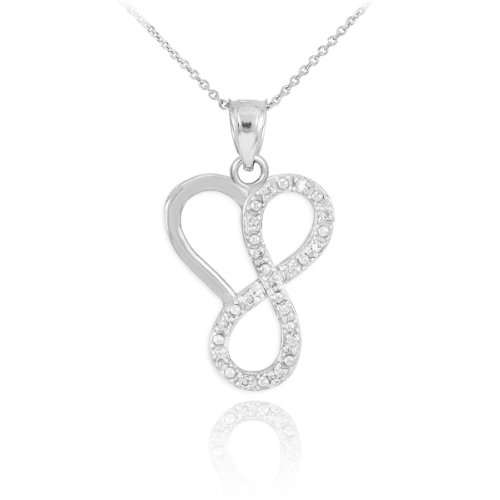 -. Binding : Jewelry -. Brand : Infinity Necklaces -. Department : womens -. Feature : contemporary forever love-themed necklace featuring a fusion of heart and infinity symbol charm design dangling from its thin yet durable solid gold chain / exquisitely crafted with solid 14 karat white gold in perfect polished finish and accented with round-shape white diamonds / comes with free special gift packaging / made in the USA yet offered at factory direct jewelry P.R.Ice / ships within 24 hours from the manufacturer directly to the customers -. Label : Claddagh Gold -. Manufacturer : Claddagh Gold -. Model : CM870WH -. MPN : CM870WH -. PartNumber : CM870WH -. ProductGroup : Jewelry -. ProductTypeName : FASHIONNECKLACEBRACELETANKLET -. Publisher : Claddagh Gold -. Studio : Claddagh Gold -. Title : Dainty 14k White Gold Diamond Infinity Heart Pendant Necklace, 18"