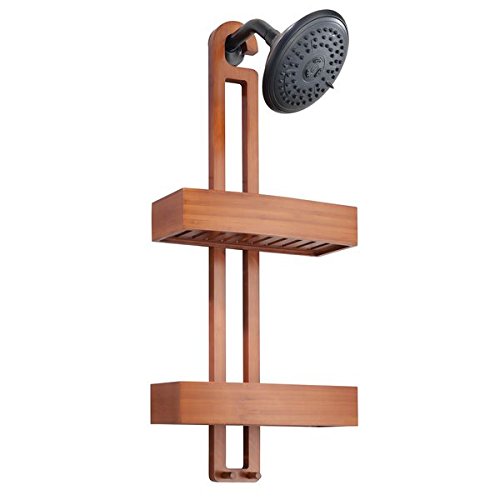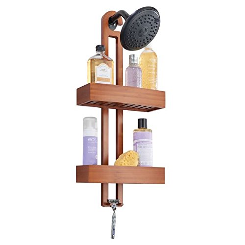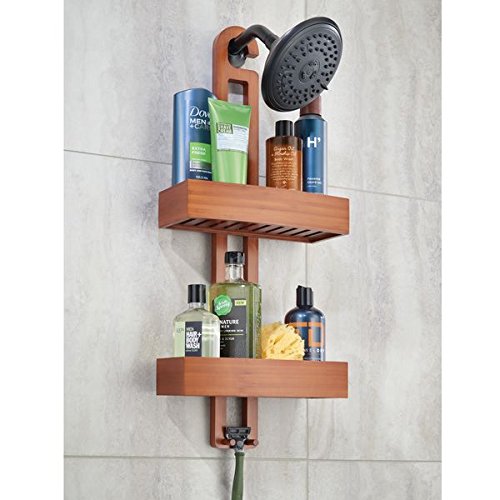 mDesign Bathroom Shower Caddy with Storage Baskets and Hooks for Shampoo, Sponges, Razors, Loofahs, Soap – Cherry Bamboo