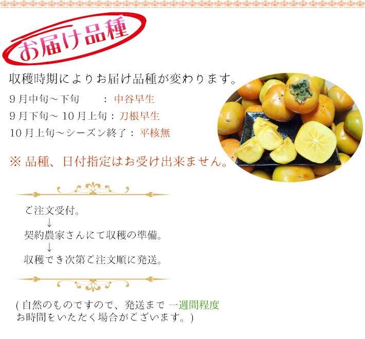 ■特徴:生産量日本一の和歌山県産種なし柿の美味しさを、お買い得価格でご提供。