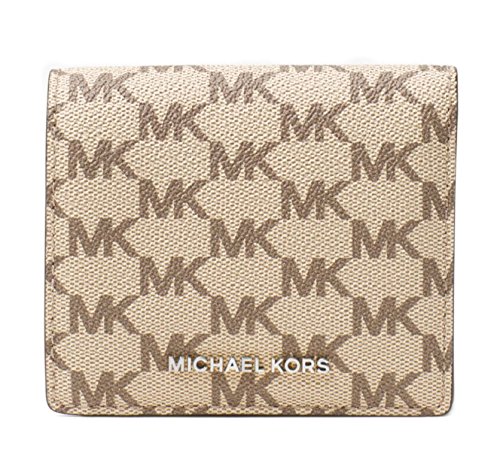 -. Binding : Apparel -. Brand : MICHAEL Michael Kors -. Department : womens -. Feature : -Leather and Coated Canvas / -Gold-Tone Hardware / -Exterior: Back Zip Compartment / -Interior: Bill Pocket, Slit Pocket, Window Pocket, Open Compartment With Slit Pocket / -4.5"W X 3.75"L X.1.25"D -. ProductGroup : Apparel -. ProductTypeName : ACCESSORY -. Size : Small -. Title : MICHAEL MICHAEL KORS Jet Set Travel Heritage Logo Card Holder