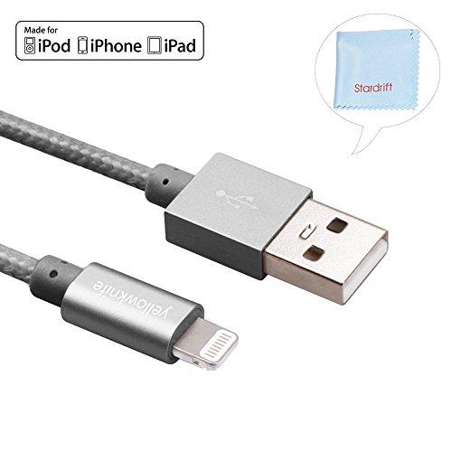 [Apple MFi Certified] Yellowknife 3ft Lightning Cable ,Nylon Braided Lightning to USB Cable Strong High Speed Charger Cord for iPhone 6 6s Plus 5s 5c 5, iPad Air,iPad Mini,iPad Pro,iPod Gray