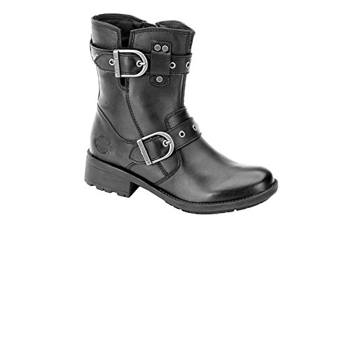 Studio : Harley-Davidson Footwear Publisher : Harley-Davidson Footwear Binding : Shoes Product Description A lightweight women's leather boot with classic moto-inspired appeal, the Grace boot puts iconic Harley-Davidson style on display with two large buckled straps and the bar and shield emblem stamped into the full grain leather heel. 0